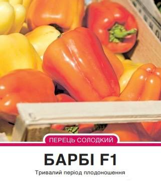 Насіння перцю Барбі F1 — ранній гібрид солодкого перцю типу Ламуйо. Плоди витягнуто-кубоподібної форми, масою 190–220 г, з відмінною зав’язуваністю навіть у спекотний період та високою стійкістю до стресових умов.