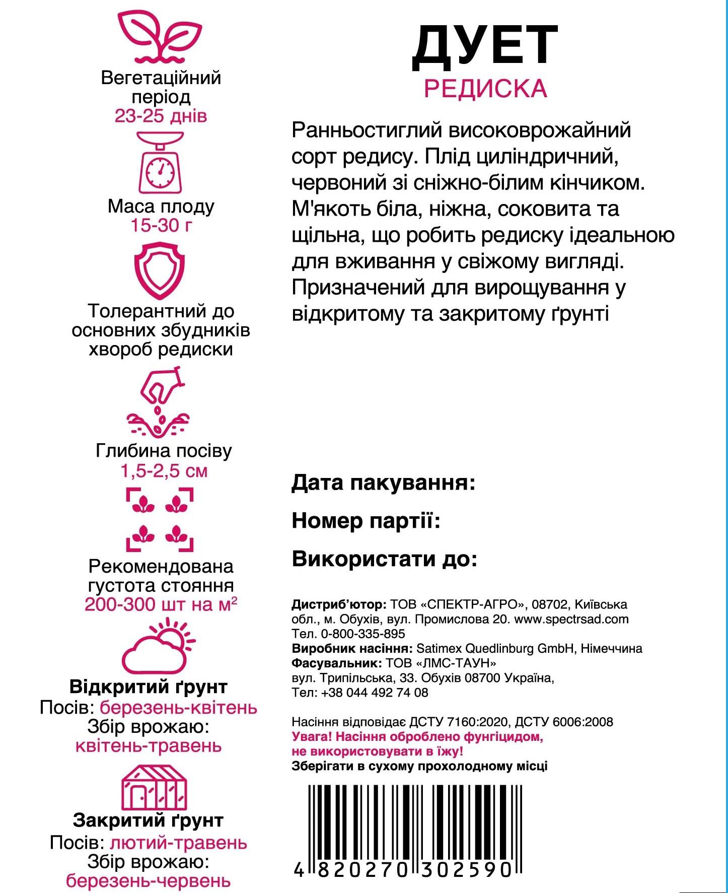 Насіння редиски Дует — ультраранній і високоврожайний сучасний сорт.