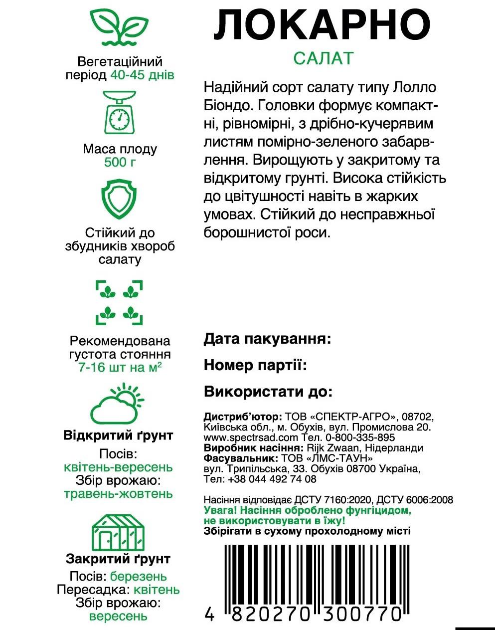 Опис (Салат Локарно тип лолла біонда,30 насінин)
