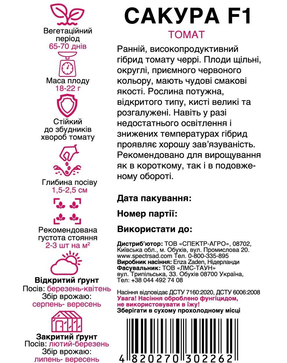 Насіння томату черрі Сакура F1, упаковка 5 шт — ранній високопродуктивний гібрид томату черрі. Плоди щільні, округлі, приємного червоного кольору та мають чудові смакові якості.