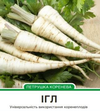 Насіння петрушки кореневої Ігл — середньостиглий сорт. Листова розетка розлога, зеленого кольору, коренеплоди білосніжні, гладенькі, з приємним смаком і ароматом.