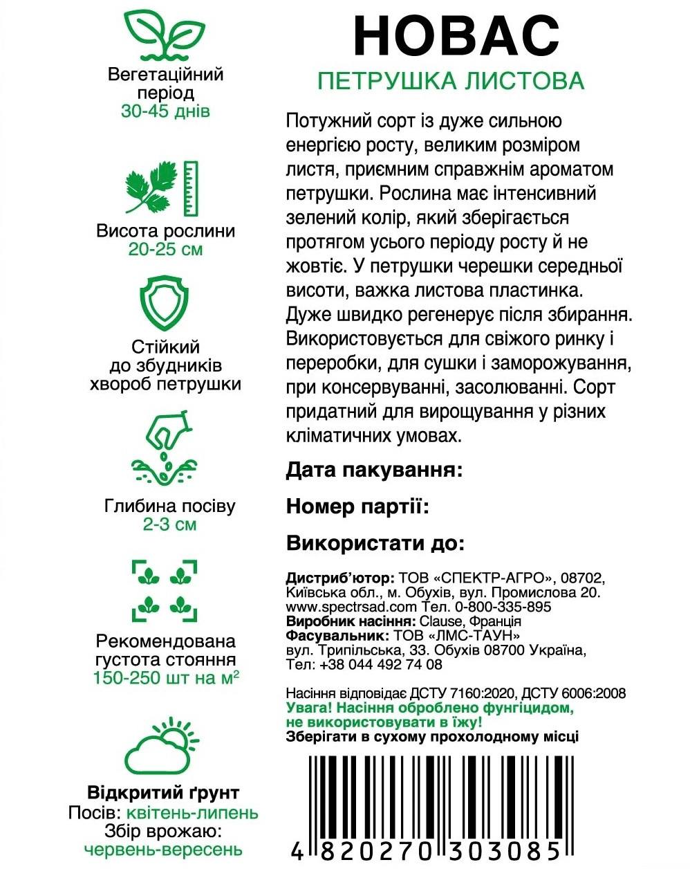 Насіння петрушки листової Новас — потужний сорт з сильною енергією росту, великим листом та приємним ароматом петрушки.