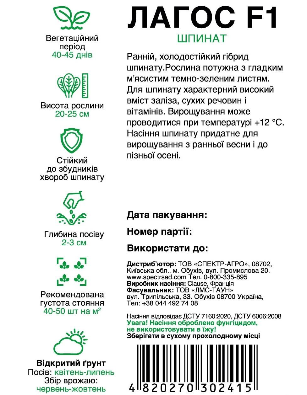 Опис (Шпинат Лагос ранньостиглий,2 г)