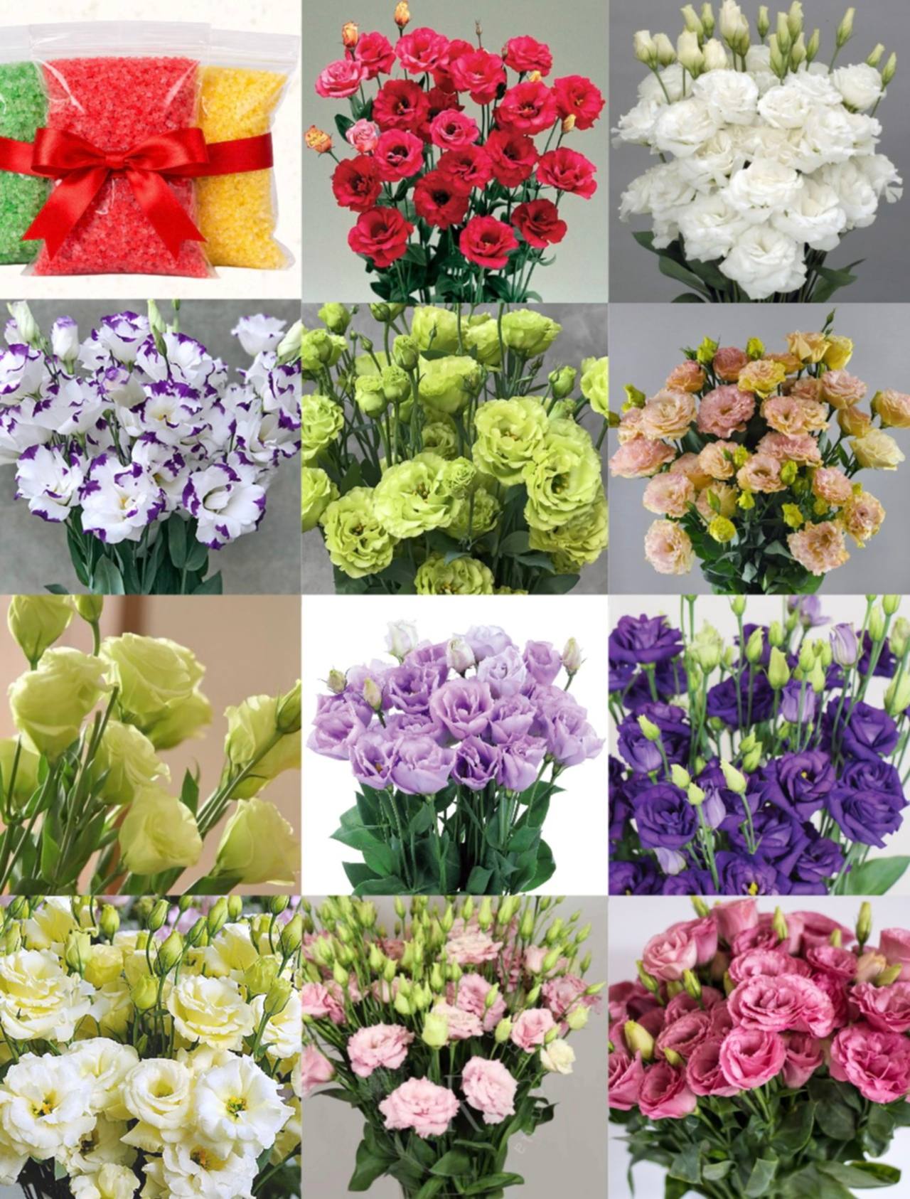 Набір «Повна палітра кольорів» містить саджанці еустоми з 11 різних кольорів, а також комплекс добрив із трьох видів — для укорінення, активного росту та цвітіння, що забезпечує повний цикл живлення рослини від посадки до рясного цвітіння.