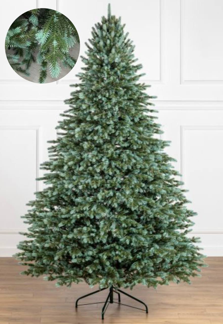 Штучна лита Ялинка Аляска зелено-блакитна 2,3 м, схожа до живої ялинки з густою, деталізованою хвоєю.